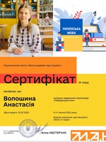 Переможець ІV етапу Всеукраїнської предметної олімпіади з української мови та літератури, учениця 10 класу КЗ «Михайлівський ліцей» Волошина Анастасія (вчитель української мови Коцупера Альона Віталіївна), у липні-місяці взяла активну участь у роботі триденного практикуму з написання есе, який організував Національний центр «Мала академія наук України» для здобувачів освіти 9-11 класів, на відмінно справилася з поставленими завданнями та отримала сертифікат відповідності.